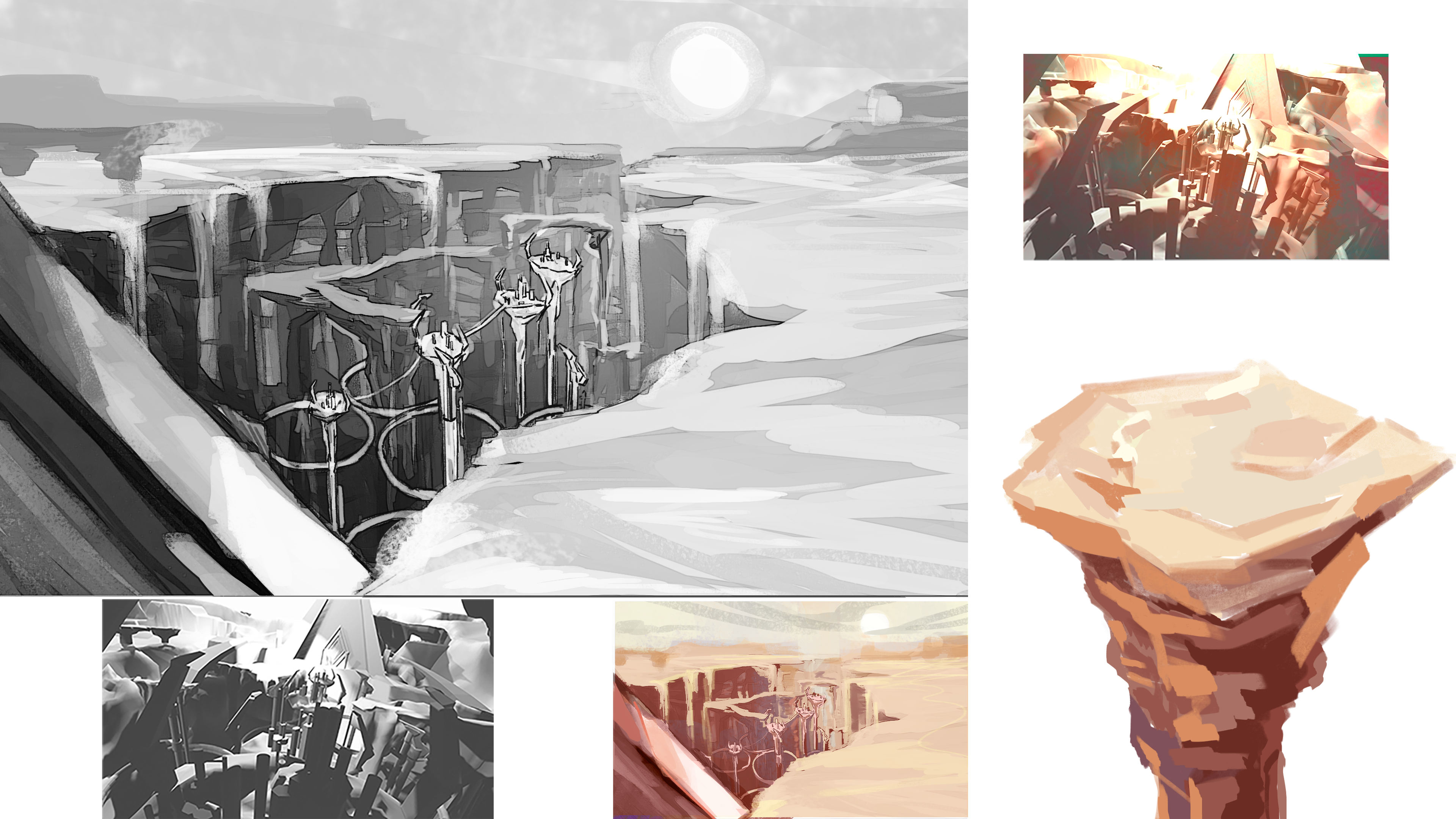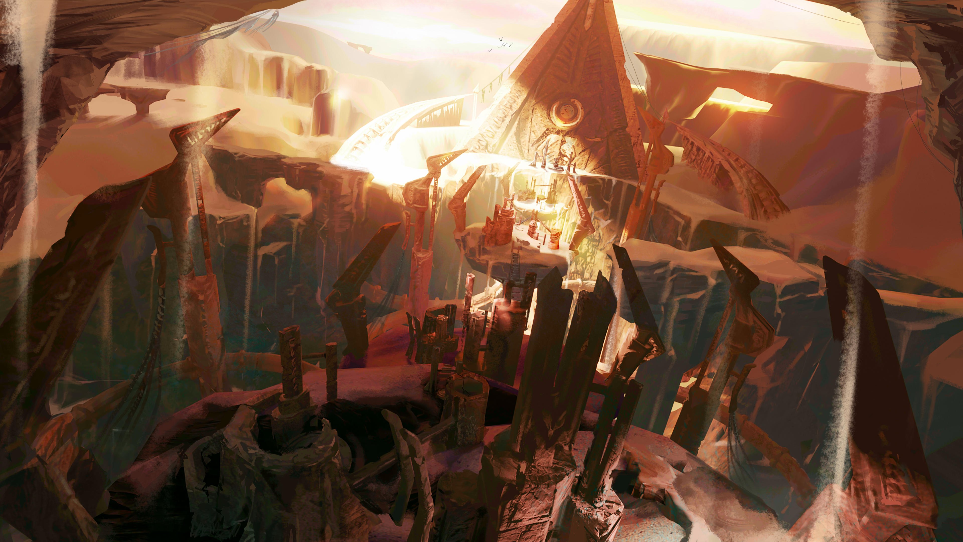 A ruin located between clifts in the sands. It used to be a huge city called Mary built by ancient people who believed fossils are god’s gifts. They used a kind of powerful runes to transfer water and energy from place to place.